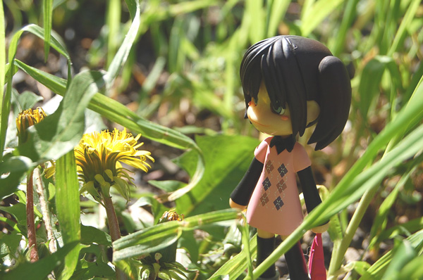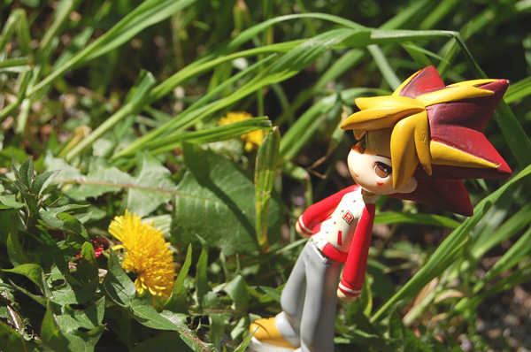 タンポポの黄色と闇様の前髪の黄色っぷりが、