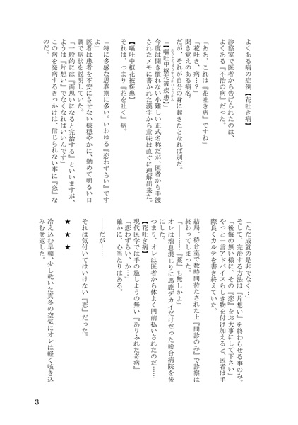 タイトルは「よくある病の症例【花吐き病】」です。